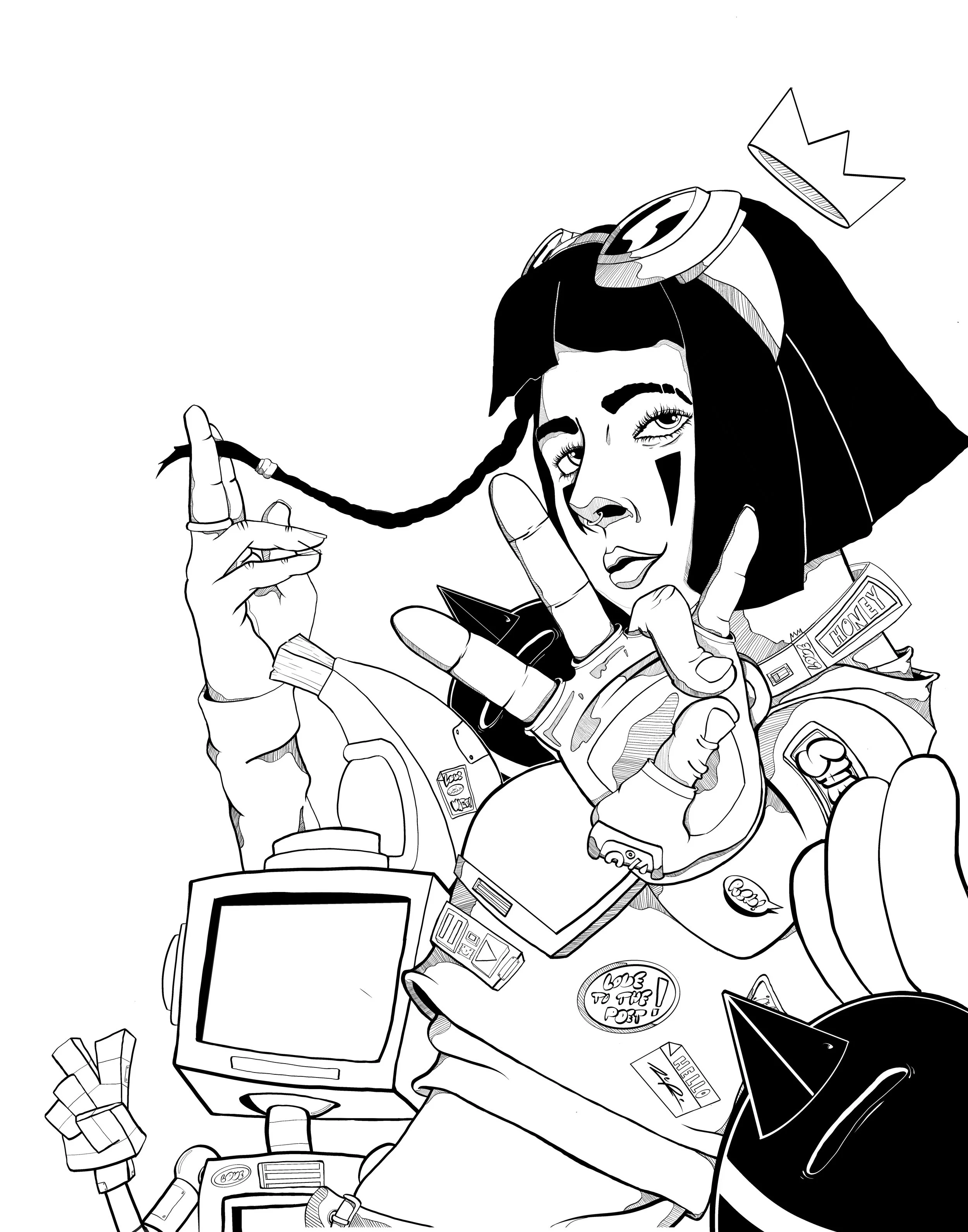 His work is known to be vibrant, colorful and imaginative. He loves to come up with wacky characters and personalities that people can remember or even relate to, his inspiration comes from comics, cartoons, street art, and world cultures old and new.
