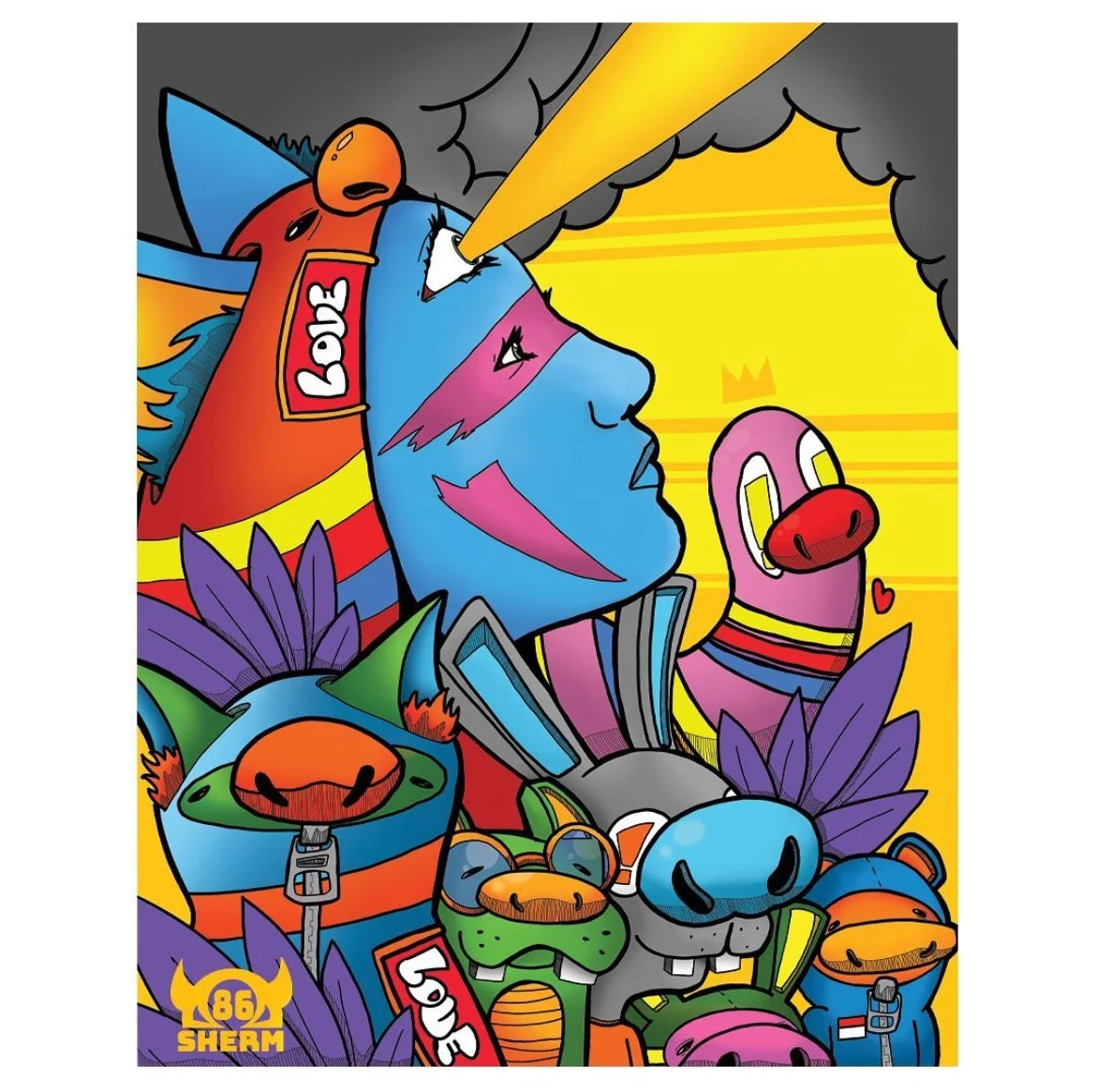 As a young inspiring artist, 86sherm wants to leave his positive mark on the world, using the his own colorful imaginative mind and characters, one piece at a time.”